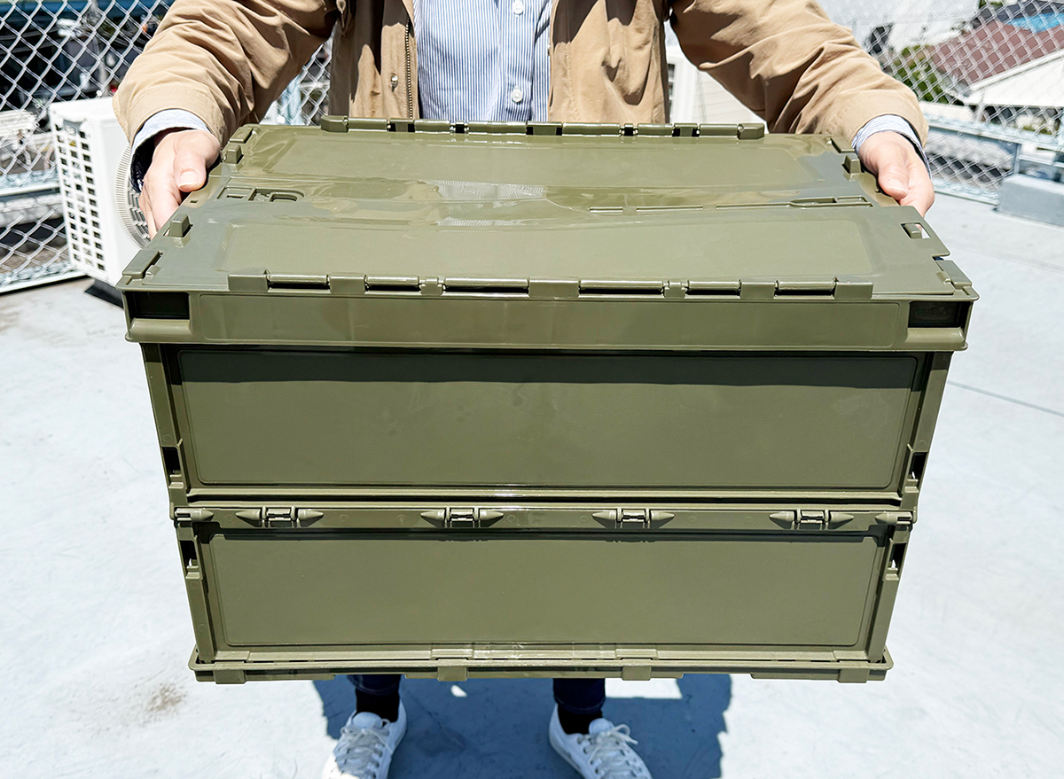 通常、ホームセンターでは折りたたんだ状態で陳列されているので、あらかじめ認識がないとこのコンテナを、コンテナとして認識できず、つい素通りしてしまいがちですが、実際に「薄型折りたたみコンテナ」に触れ使ってみると、筆者が求めていた全ての要件を満たしてくれることがわかりました。