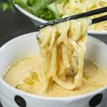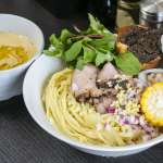 「つけ汁は、生のとうもろこしをピューレ状にしたものに、はまぐりのスープと豆乳を合わせたものですね。麺は平打ちのストレート。うちは、メニューによって麺を変えるので、常時5〜6種の麺を使っているんです。すすり心地にもこだわっていますね」