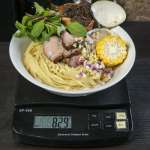最初はデカ盛りなんてないよ〜、と言われてビビったけれど、実際に測ったら約1.2kgのボリューム。おそらく、大+150円にしなくても、1kg弱はあると思う。ただ、おいしくってあっという間に完食してしまったとうもろこしつけ麺。