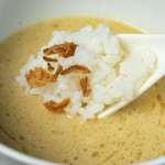 「麺を食べ終わったら、最後にサービスで一口分のゴハンを出すのでぜひこれも。冷たいスープに温かいゴハンで、甘さが変わるんですよ」