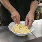 ▲麺にしっかり絡むとうもろこしのスープ。ルッコラのほんのりとした苦味とも合う!