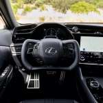 「従来のコクピットに大変革をもたらす」とはレクサスの弁。ステアリングホイールは通常の円形でなく、航空機の操縦桿のような形状です。それだけでなく、左右約200度の範囲(だけ)で操作が可能となっています。