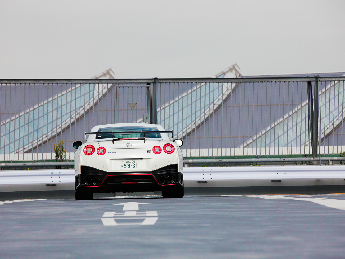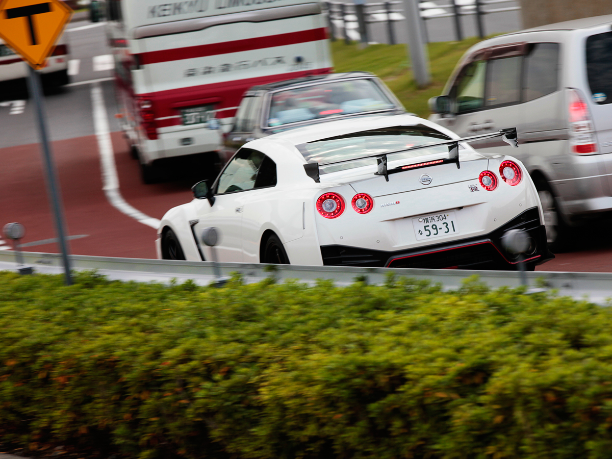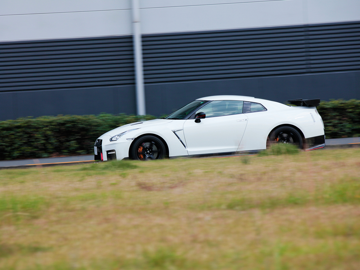 低回転走行時の、キッチリ仕事はしますがどこかご大尽風の鷹揚なフィールは影をひそめ、ペダル操作に俊敏に応える、鋭いスーパースポーツ本来の姿が現れます。にわかにボディの大きさが感じられなくなり、GT-R ニスモはドライバーの運動能力をありえないほど拡張するバトルスーツに変身する…といったら大袈裟に過ぎましょうか。