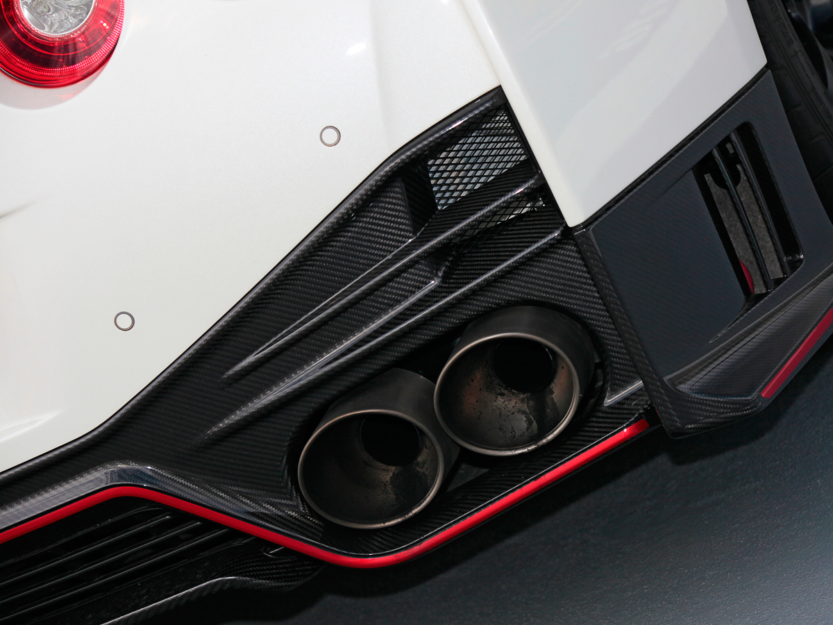 2017年モデルの基本的な改良点は、ノーマルGT-Rのそれらに準じますが、フロントには、独特の形状を採るバンパーが与えられ、ニスモ仕様であることを主張します。カーボンファイバーシートを幾層にも重ねて作られた、手の込んだ一品です。エアダム下部のカナード部分が赤くペイントされていて、うーん、カッコいい!