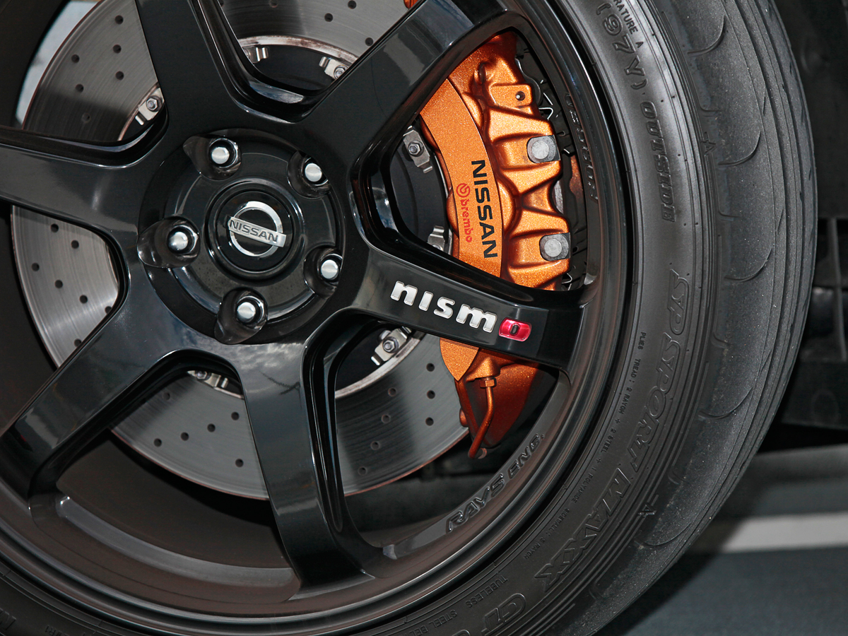GT-R ニスモは、エンジンのアウトプット増大に合わせた専用燃料ポンプ、増大した熱量には、冷却水の加圧式リザーバータンクが与えられます。ストッピングパワーは、強力なブレンボ製のモノブロックキャリパー(フロント:6ポッド/リア:4ポッド)が提供します。これなら“吊るし”の状態でも、サーキットでのスポーツ走行に余裕で対応できるはず。