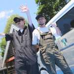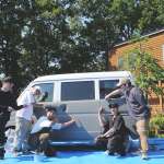 塗装は5名の編集部員で、塗料、ハケ、ローラーを手にヤマケン号の各所に散開! ハケ、ローラーに塗料を含ませすぎず薄く手早く塗り広げるイメージで、まず全体を覆っていく。