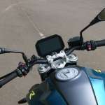 ハンドルはネイキッドマシンらしいバーハンドルですが、高さは抑えられていて前傾気味の乗車姿勢になります。スポーツネイキッドらしい乗車姿勢でフロントに荷重しやすいポジションですが、長時間のツーリングでは休憩を早めに取った方がいいかもしれません。
