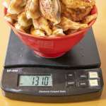 直径18.5cmの器に高さ約20cm、重さは1310g(器の重さを除く)。上から見てもゴハンは見えない。餃子が層になっています。