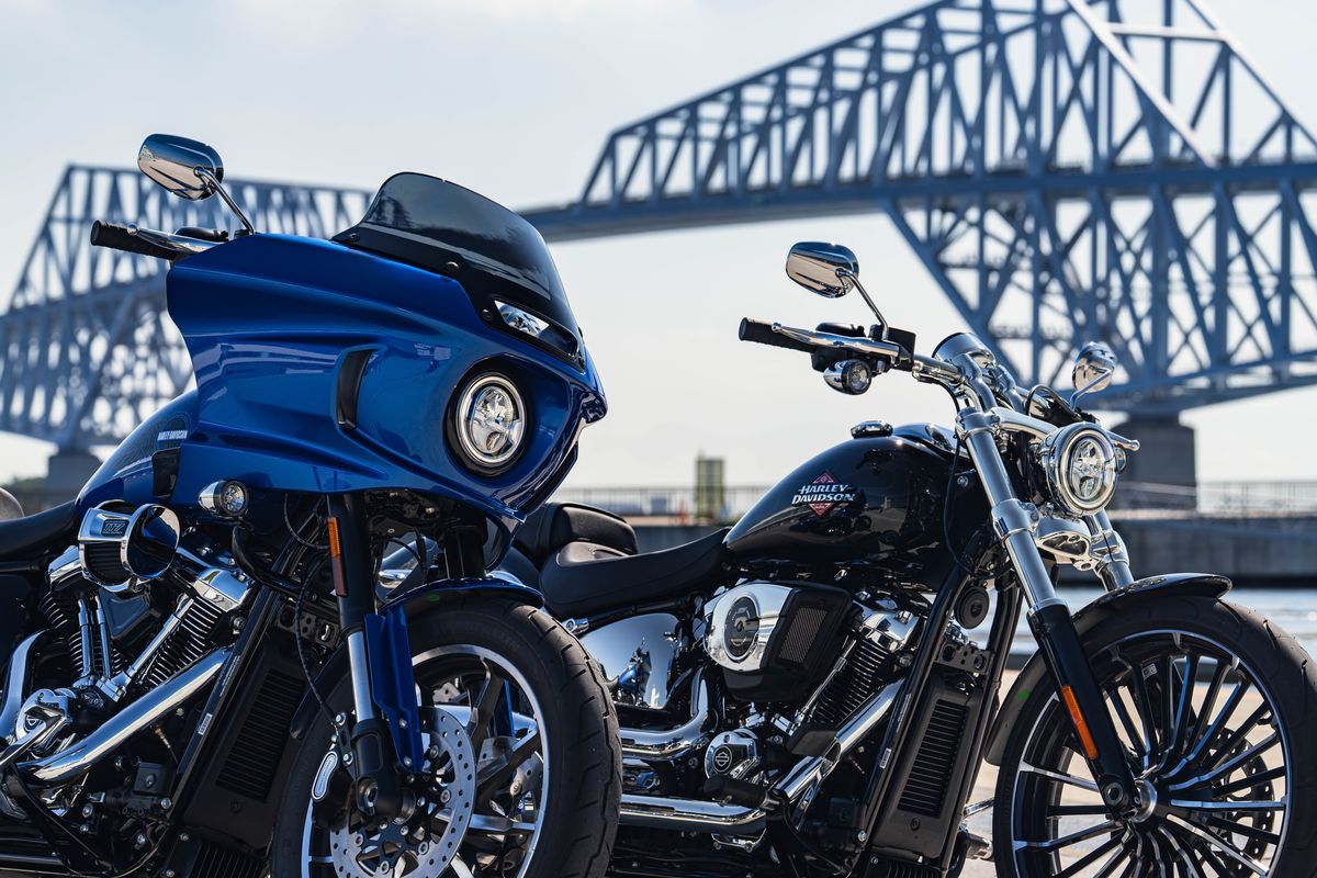 どちらのモデルもハーレーダビッドソンらしいクルーザーモデルですが、デザインのテイストは明らかに異なります。「ブレイクアウト」はロー&ロングなシルエットが特徴のモダンチョッパー。