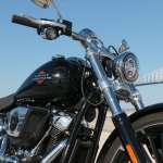 「ブレイクアウト」はフォワードコントロールと呼ばれる前に足を伸ばすようなステップ位置で、ハンドルは低く、前に腕を伸ばすような乗車姿勢。ノーマルでもカスタムチョッパーに乗っているような気分が味わえます。ただし、長時間のツーリングになると疲れを感じる部分もありそう。