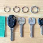 ▲左からバランキーホルダー、両親が住む実家の鍵、自宅マンションのトランクルームの鍵、自宅の鍵、自転車の鍵