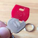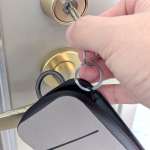 数字が丸わかりになる自宅の鍵とトランクルームの鍵にカバーをかぶせたら、二重リングを取り付け、いよいよキーケースに装着です。