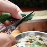 大葉や海苔のように薄くてやわらかいモノを切るのはキッチンバサミの真骨頂。「風切」があればカップ麺やソーメンの薬味作りがはかどります。