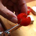 ■細かなギザ刃で熟したトマトがスパッと切れる