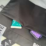 さて、続いてはより機能的な部分を。気になる素材ですが、表地は420デニールの平織りナイロンを採用しています。さらに内側はコーティングを施すことで防水性を付与。急な悪天候でも安心です。サイズはW540(~395)×H380×D155mmで、重量はたったの200g。少しでも荷物が重いと感じたくない身からすると、バッグ自体の軽さってとても重要なので助かります。