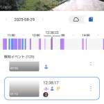 ▲撮影済みデータ一覧。タイムライン上に時間表示、検知条件が出るので探しやすい