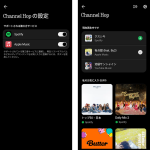 ▲Nothing端末と接続する場合にだけ利用できる「Channel Hop」。再生中のプレイリストや楽曲から登録できる。まだ「YouTube Music」に対応おらず残念