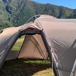 「ランドネストシェルター」は1張りでリビングと寝室を作れますが、荷物が多い家族や大きめのファニチャーを使っている家族だとリビングがちょっと手狭に感じるかも。