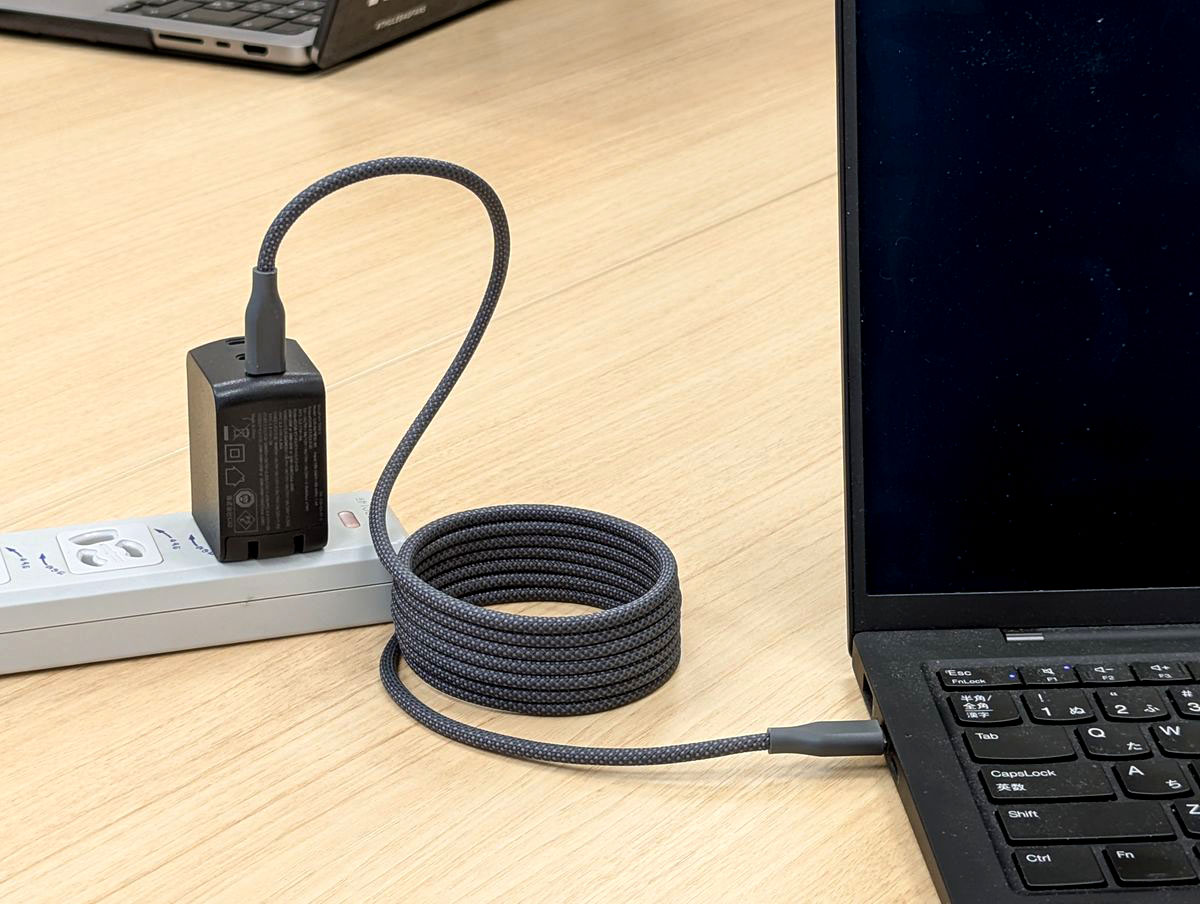 というわけで、ひさびさにメインとなるUSBケーブルを新調しました。これまで使っていたのは、2年ほど前に購入したCIOの「240W USB C to C 2mシリコンケーブル」。柔らかく形がつかないシリコンケーブルの取り回しの良さに不満はさほどありませんでした。