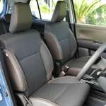 シートも従来型はパイピング処理や撥水加工を施したハニカム柄でアクティブな印象がありましたが、新型はヘリンボーン柄を採用しています。ヘリンボーンの生地だと一般的には柄を縦向きに使用しますが、新型クロスビーでは敢えて柄を横向きに配置しているのが面白いところ。これは車内の広がり感を狙った演出だそう。