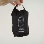 容量は3Lで、重さは約100g。素材はリサイクルナイロンで、触るとサラッとして軽やか。薄手ながらハリがあり、扱いやすい質感です。