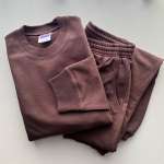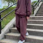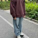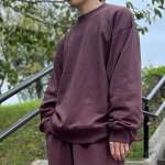 まずはセットアップスタイルで着用してみました。シンプルですがシルエットもこだわって作られているため、スポーティ過ぎず部屋着感も少ない印象です。トレンドのチョコレート(ブラウン)カラーも相まってさりげなく洒落た雰囲気が醸し出せるように思えます。また、着心地に関しても申し分ありません。15.5オンスと一般には超肉厚な部類に入るスウェットは硬かったりゴワついたりしがちですが、空紡糸を使用しているからかストレスなく着られます。