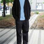 ちなみに、インナーには記事でも紹介したファミマのスウェットを合わせてみました。昨年追加された「はいあお」が黒のカーディガンによく映えて、思った以上に相性抜群。