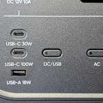 AC(コンセント)が3つ。USB-Cは出力30Wが1つ、100Wが1つ。USB-Aが1つ。あとDCが1つ付いています。