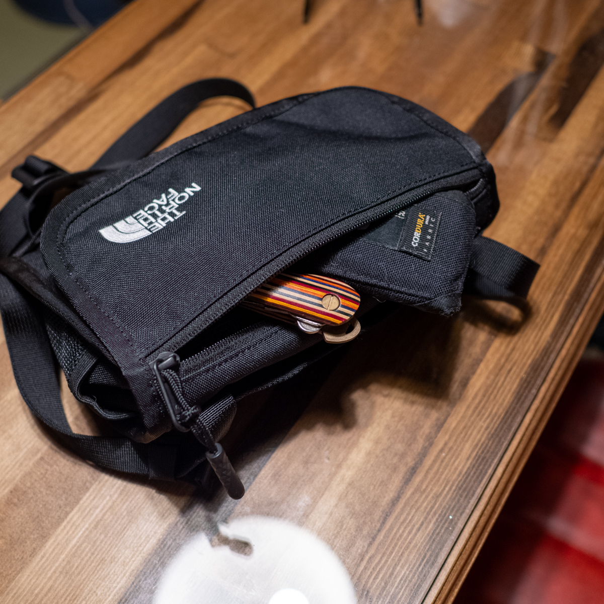 そして何より、気軽に扱えることが大きい。キャンプ用として作られているので多少ラフに置いても気にならず、地面に触れてもサッと払えば済みます。外出時にカフェの床や車の足元に一旦置く場面でも、神経質にならずに済みます。普段使いのショルダーは意外とこうした場面で気をつかうので、この安心感は大きい気がします。