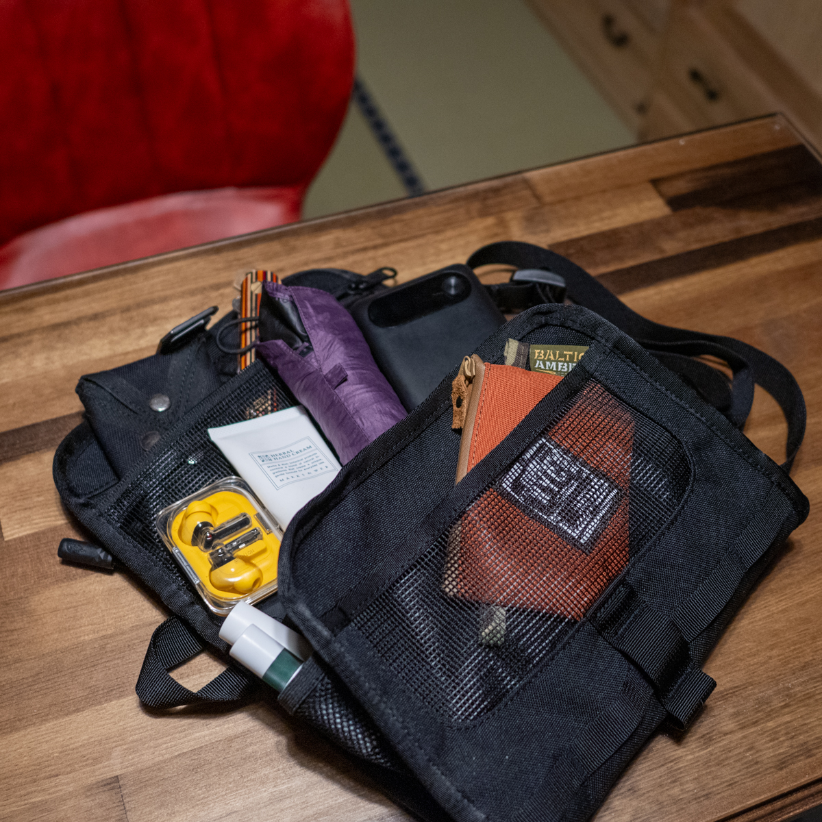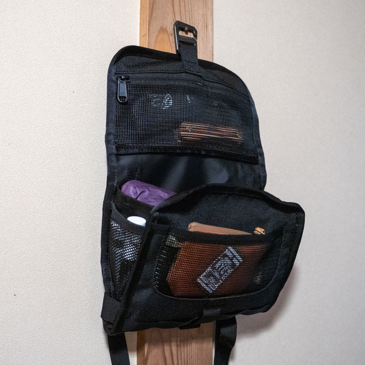 リップストップナイロンなどを素材に使った軽量なポーチやサコッシュなどと違い、ある程度形を保ってくれるので荷物を満載しても形が崩れません。アウトドア系のバッグはモノよっては少し野暮ったさを感じることもありますが、ミニマムなデザインも相まって、街使いでも違和感がないのが嬉しい。
