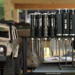 走り終えたRCたちは、メインテントにあるパドック棚に陳列。細部にまで手が入れられたクルマは出色の出来栄え。どうやって作ったのか想像できないものも多く、見ているだけでもワクワクしました。