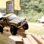 開会後、雨が小降りになった頃合いを見て、特設オフロードコースで始まったのは「トレイルラン」。相棒となるWPL製アウトドアラジコンが、自然の地形を活かしたコースを次々と駆け抜けていきます。
