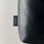 そしてサイドに配されたさりげないブランドタグ。レザーのショルダーバッグはどちらかというと重たい空気感を持つアイテムですが、このピスネームがあるとないとでは印象がまったく異なります。付けることでほんの少しカジュアル感が出るため、軽さを出せるのです。それでいてタグ自体は同色でブランドネームも墨黒にしているのでカジュアル過ぎず、全体のイメージを崩しません。このバランス感は唸りました。