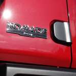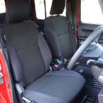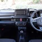 ジムニーシリーズは軽自動車のジムニーと普通車のシエラでボディは基本的に共有されています。ノマドも全長を延長してその分室内長も広げられていますが、室内幅と室内高は軽のジムニーと同じ(だから定員は4名です)。インパネデザインやスイッチ・メーター類などの配置もジムニーと変わりません。そのため、ジムニーやシエラからの乗り換えでもまったく違和感がないのと同時に、すでに数多く販売されているジムニーに合わせて作られた社外パーツをそのまま使えます。