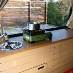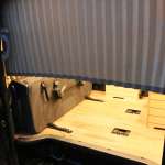キットはセカンドシートを活かしたまま装着できるので、2列シート車なら乗車定員などを変更しなくて済むのもメリット。セカンドシートを畳めば結構広い空間が出現するので(この部分にもウッド素材の床が貼られています)、キャンプで使用した道具などを入れておくこともできます。そのスペースで靴を履いて、サイドのスライドドアから出入りできるので、夜中にトイレに行くときも出入りしやすかったのが印象に残っています。