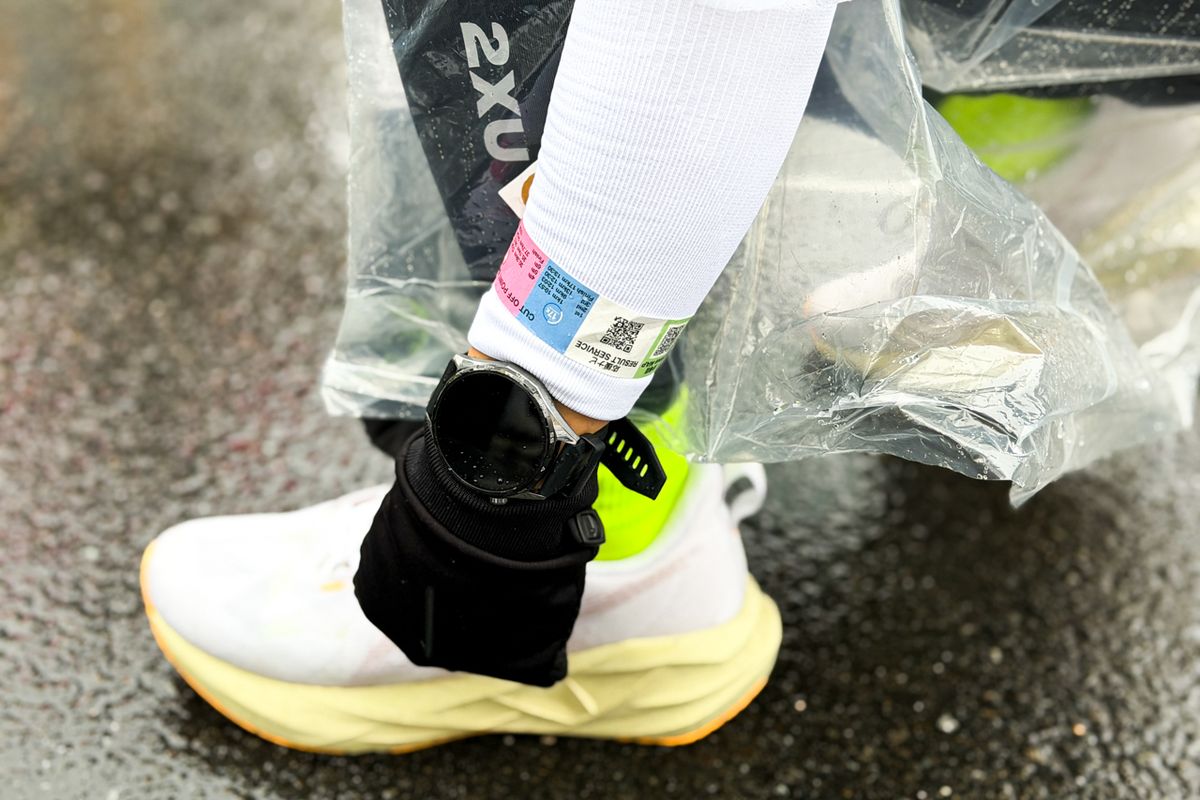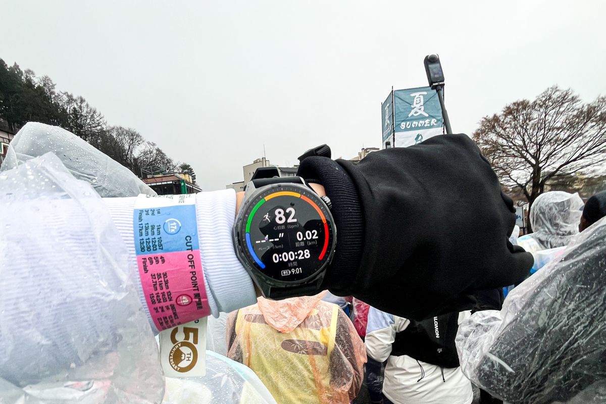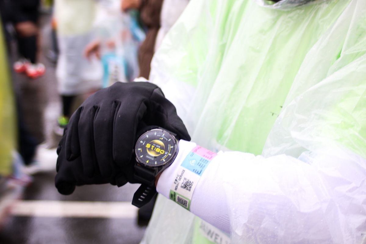 しかも、レインポンチョを羽織って走るのは、今回が初めての経験。動きにくさやまとわりつく感覚といった「慣れない環境」は、知らず知らずのうちに体力を削り、完走への不安を増幅させていきます。さらに足元を見れば、シューズも雨で濡れていく始末。 勢いよく飛び出す気にはなれず、普段よりもグッとペースを抑えた、不安だらけの走り出しとなりました。