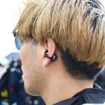 ■耳元には「FreeClip 2」。雨も騒音も気にせず、音楽と声援を力に