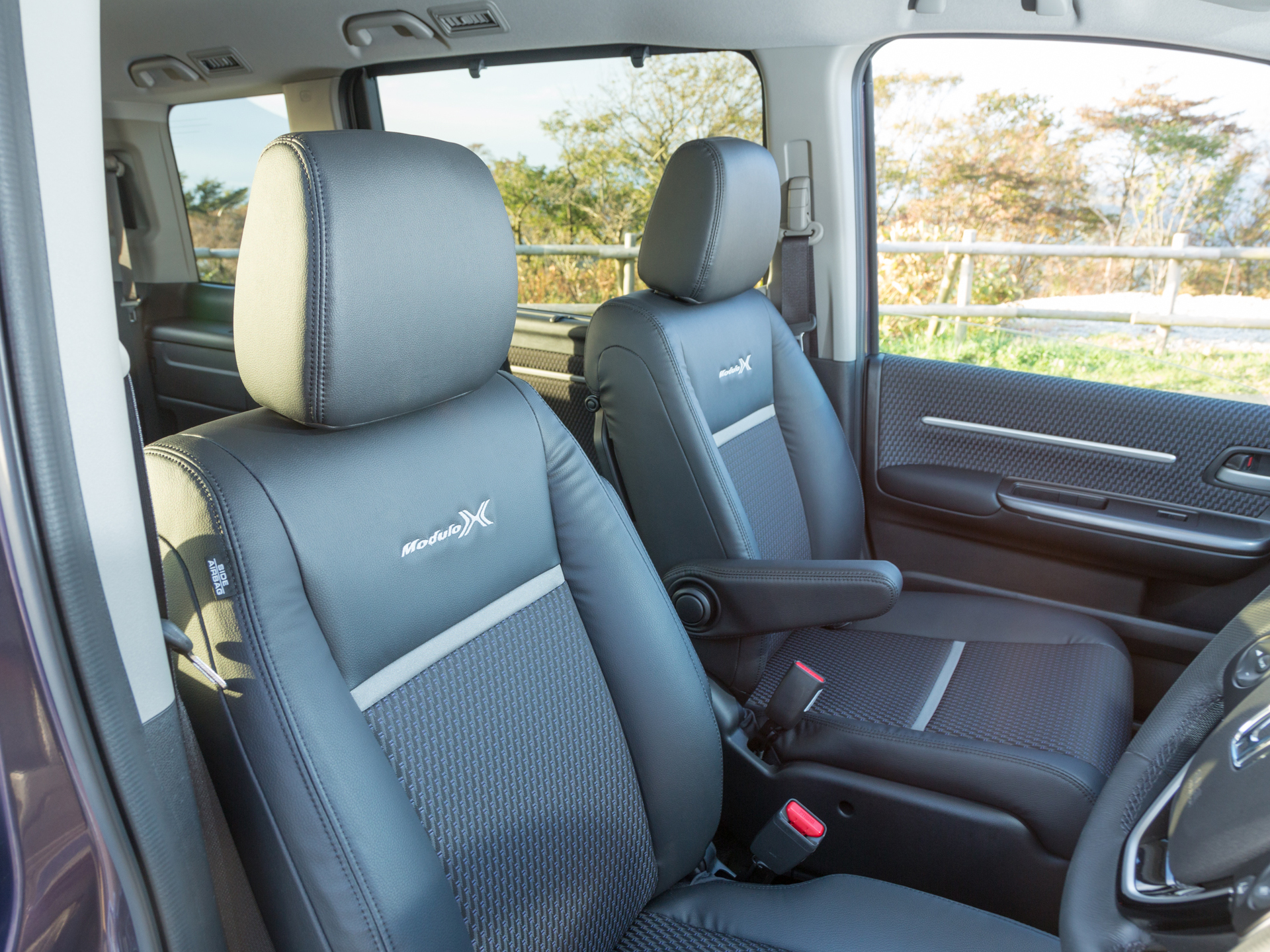 インテリアでは、モデューロXのロゴが入ったシート、本革巻きのステアリングホイールとセレクトレバー、ピアノブラック調に仕上げられたインパネのミドルパッドなどが専用品。さらに、9インチのインターナビ対応カーナビ(専用のオープニング画面付き)、ドライブレコーダー、ETC2.0車載器などが搭載されています。