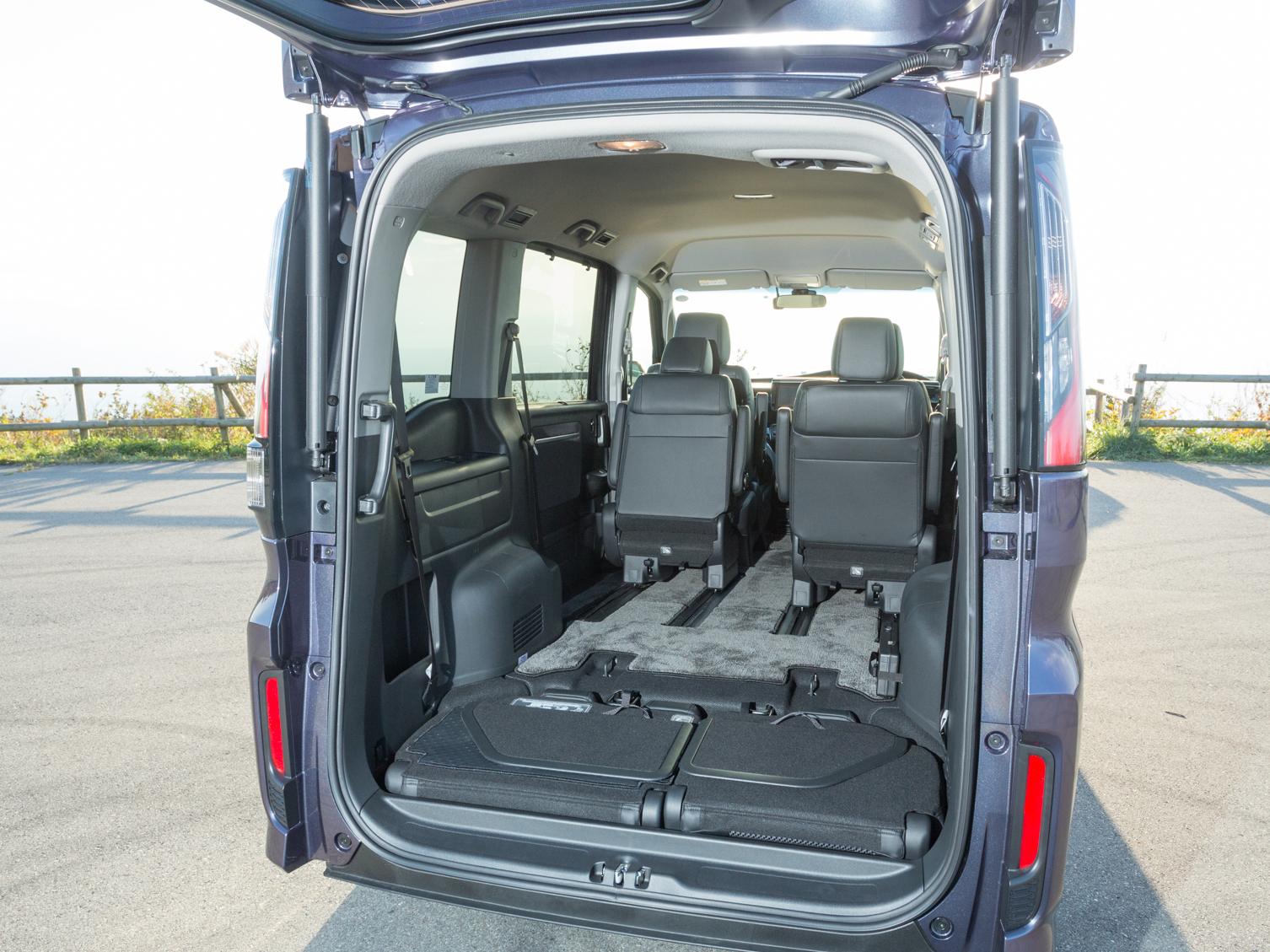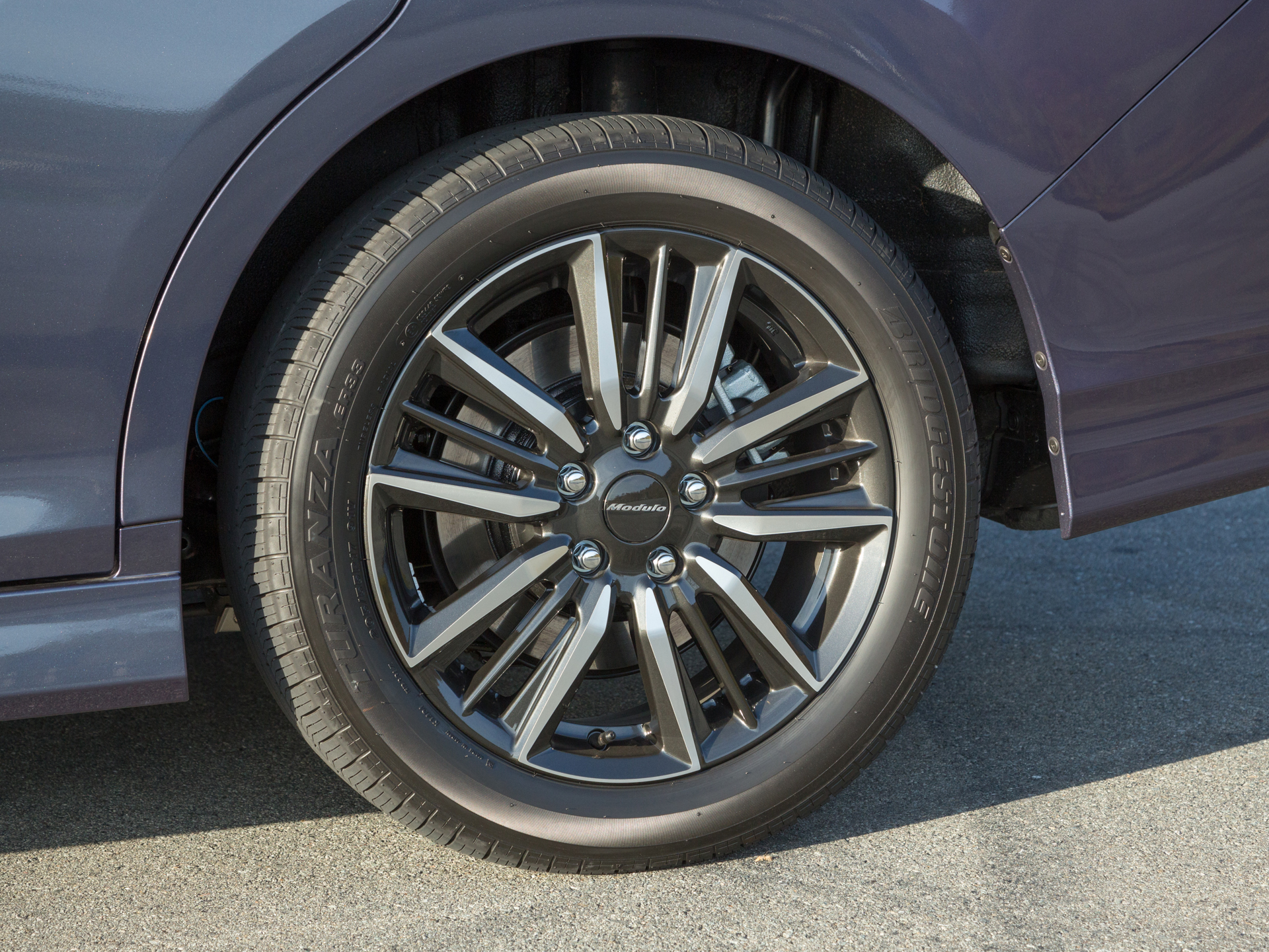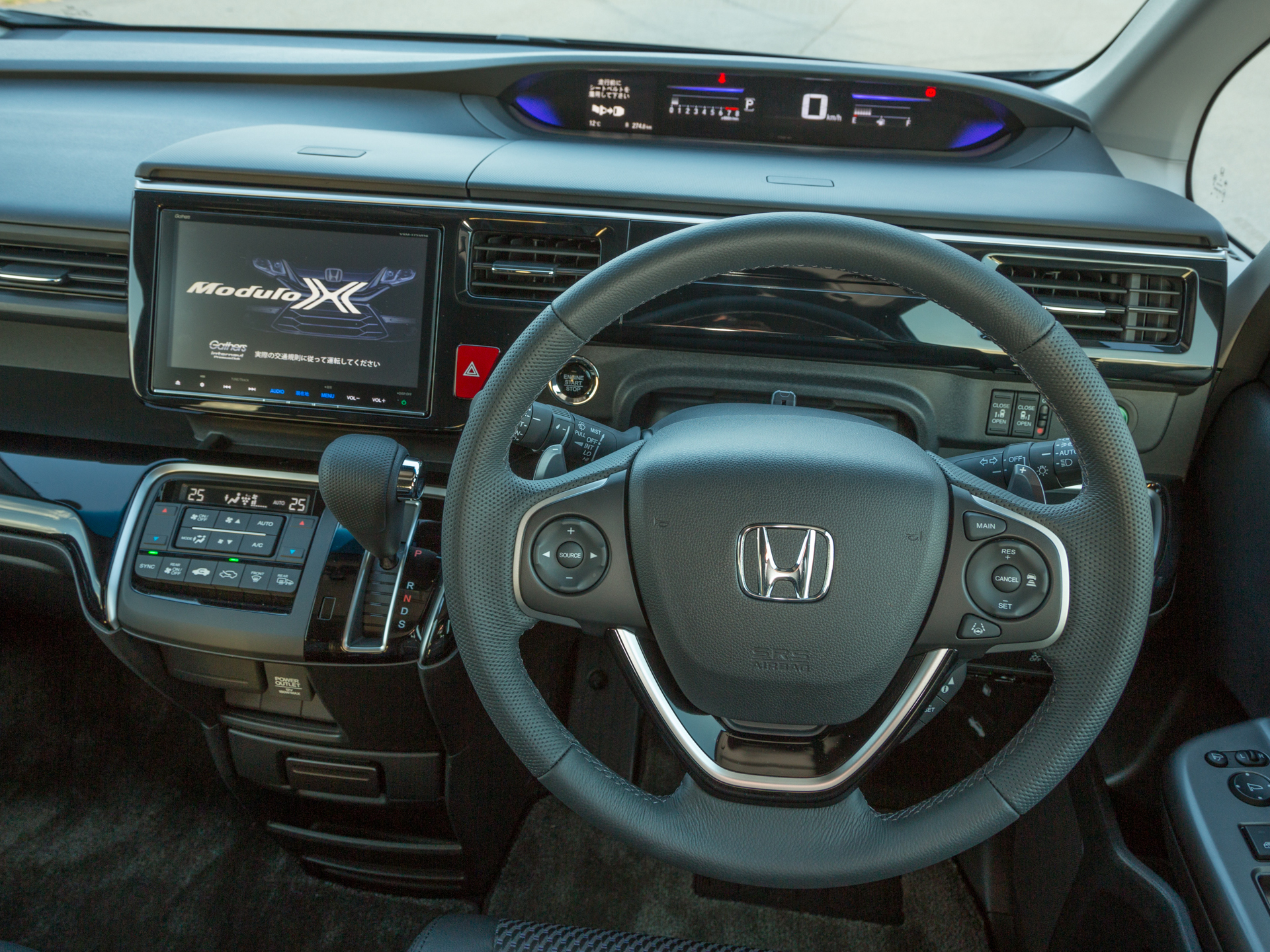 ベースモデルから変更されているのは、足回りでは専用のサスペンションと17インチアルミホイール。エクステリアでは専用のフロントグリル&エアロバンパー、ビームライトとLEDフォグライト、それに、リアのロアディフューザーとエンブレムも専用品となっています。個人的には、「X」の文字をかたどったフロントグリルのデザインが、ややおとなしめのステップワゴンの純正グリルより迫力があって好みです。