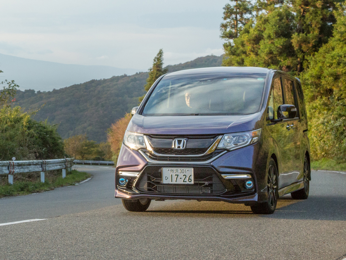 チューニングによってブラッシュアップが図られているのは、4輪の接地感と路面トレース性能、それに、エアロパーツによる直進安定性です。このうち、足回りの性能向上は、走り出してすぐに感じられました。車高は、ステップワゴンの「スパーダ」グレードと比較して15mm落とされ、サスペンションはバネレートと減衰力を変更している、とのことですが、交差点を曲がるだけでも4輪がしっかりグリップし、どこをとおっているのかが伝わってくる感じ。それでいて、ガチガチに固め過ぎて、路面の凹凸を拾ってしまうような挙動は皆無です。フロントのバネレートについては、スパーダに比べて弱くする方向に振っている、とのことですが、それが功を奏している印象。