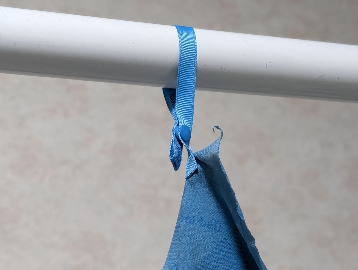 またホック留めできるループが付いているので、タオル自体も乾かしやすい。ちなみにこのループ、小さくまとめる際にも使います。