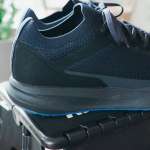 そうした背景もあってか、細かいところまでよく考えられているのですが、まず「おっ」と思ったのが、アッパーと履き口がニット素材になっている点。足を入れた瞬間から窮屈さがなく、ストレスなくスッと履けます。