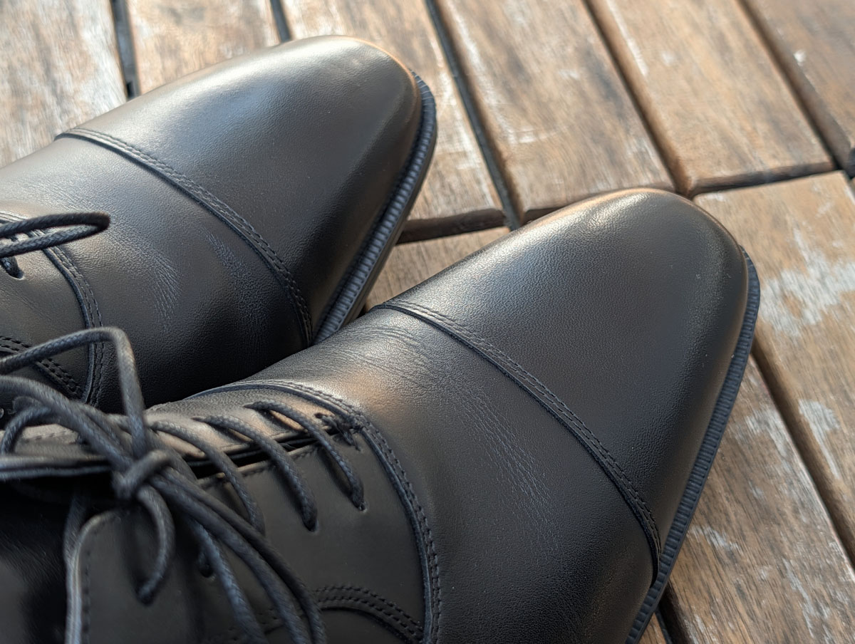 アッパーはたしかに本革製。革となると、履き続けて足のカタチに合わせていくというイメージでしたが、適度な硬さはあるものの硬すぎず最初から足馴染みがいい。