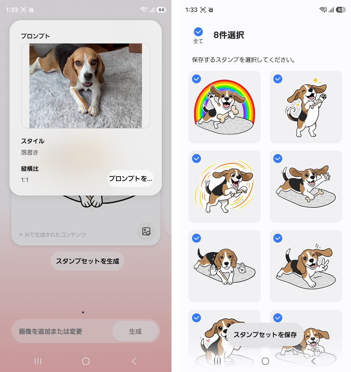 ここ数年、Galaxyの大きな特徴となっている「Galaxy AI」は、どのモデルでも同じように使えます。従来通り、文章作成、要約、翻訳、画像生成などを行えることに加えて、画像の編集機能が大きく進化していました。チャット形式で指示を出すだけで画像を思い通りのイメージに変えられたり、画像から複数のスタンプを作成してメッセージに添付できたり…。