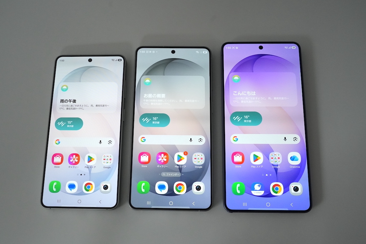 ▲左からGalaxy S26、Galaxy S26+、Galaxy S26 Ultra