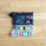 ということで、普段持ち歩いている小物を入れるポーチとなりました。花粉症の季節だったので、目薬とヤードムとリップ。