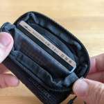 4位の「ナノコインワレット」の方はマチがあり、サイズもひと回り大きい。一方の3位「カードサイズポーチ」はとにかくシンプル。マチなしでまさにカードサイズ。パッケージに付いていたパラコードを短く切ってファスナーの引き手に流用しています。