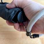 スタンダードプロダクツのハンドストラップを見つけた時に「これだ」となりました。付けてみると、ちょうどいい。手首に掛けておけば、傘を持たなくてもよくなりました。