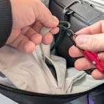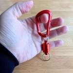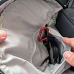 内側のファスナーポケット内にキーリーシュが付いているんですが、鍵はキーケース運用にしたことで、このキーリーシュは使っていませんでした。そこに、付属のカラビナを取り付けてぶら下げることに。