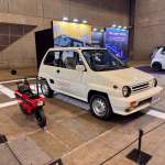 ▲過去から現在へのつながりが製品を通して感じられる展示をという主催者の要請によりホンダがもちこんだシティ・ターボⅡ(右奥にSuper-ONE)